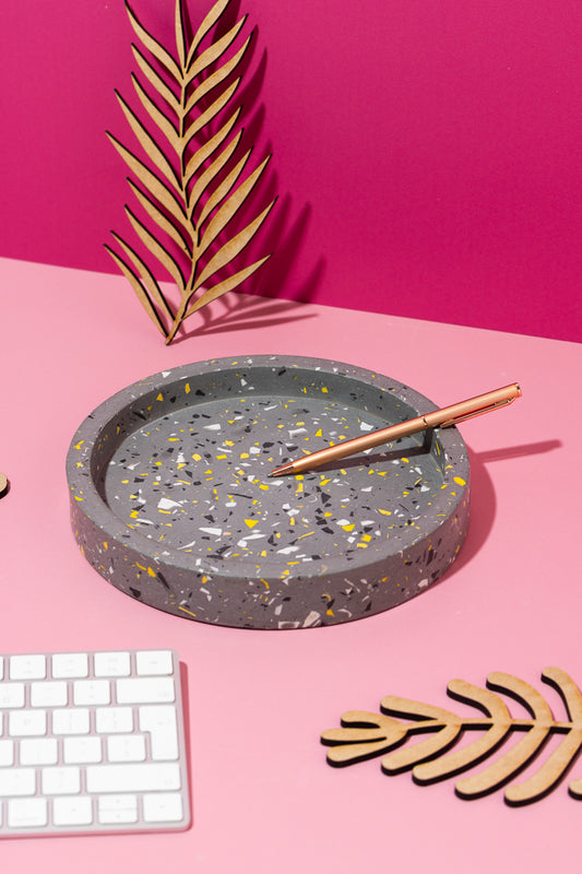 Black, Yellow, White, Grey Terrazzo Medium Round Trinket Tray