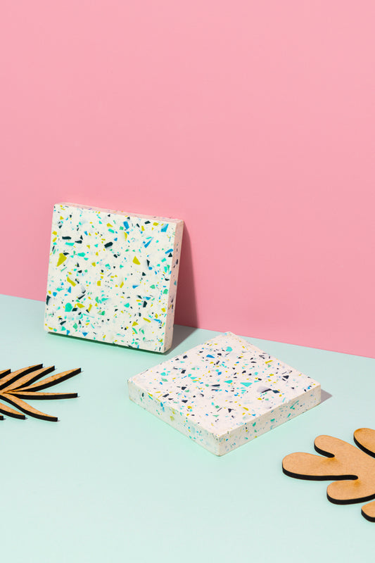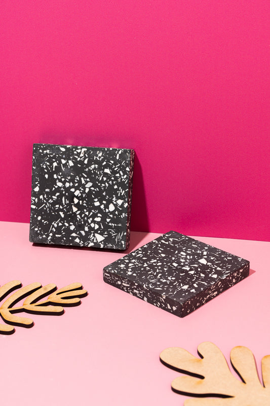 Black and White Terrazzo Square Coasters