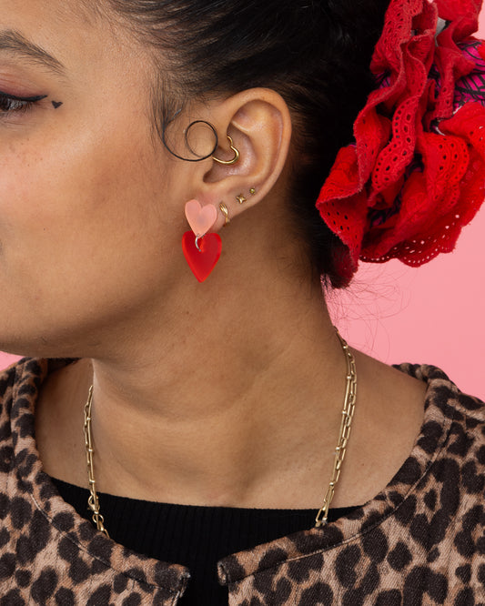 Two Tone Heart Dangle Earrings