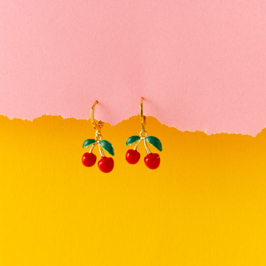 Cherry Huggie Hoops