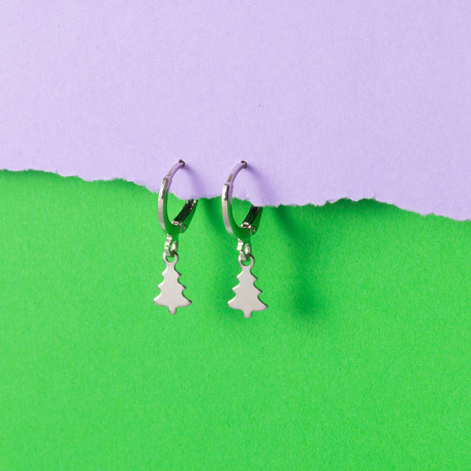 Christmas tree Huggie Hoops Silver