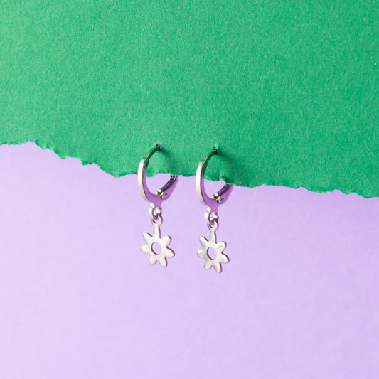 Flower silver Huggie Hoops