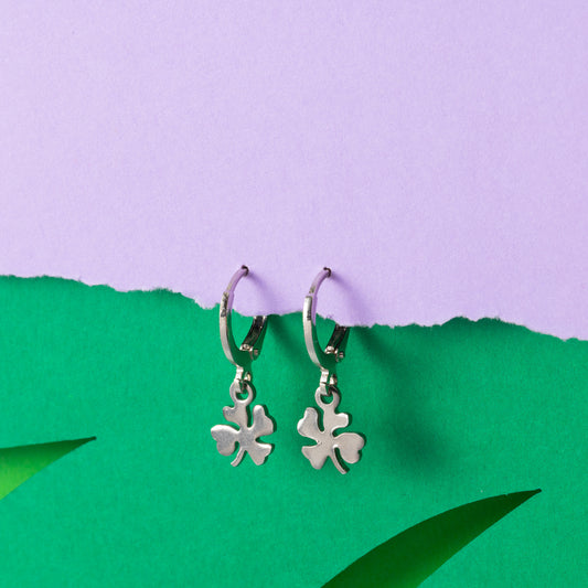 four leaf clover Huggie Hoops Silver