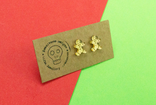 Gingerbread man Gold Stud Earrings