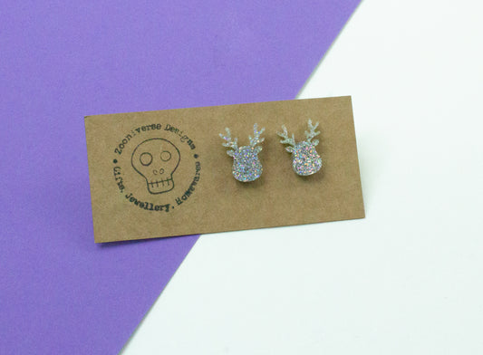 Reindeer face Glitter Stud Earrings