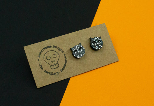 Cat Face Glitter Stud Earrings